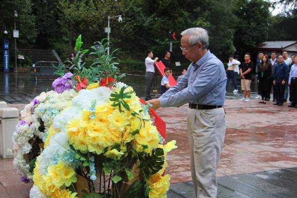 经过两个多小时的车程,大家来到遵义红军山烈士陵园。在红军烈士纪念碑前,两校师生代表首先敬献花篮,深切缅怀为民族独立和人民解放、国家富强和人民幸福而英勇捐躯的革命先烈,向他们致以崇高敬意。随后,在童兵教授的带领下,两校师生党员面对党旗庄严宣誓,重温入党誓词。