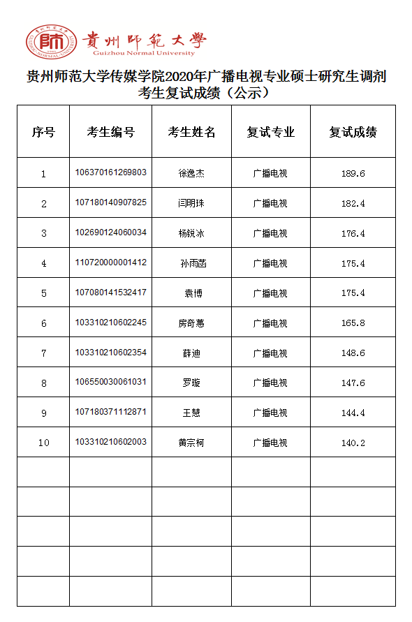 三亿体育2020年广播电视专业硕士研究生调剂考生复试成绩(公示)