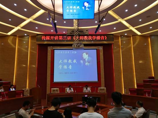 报告会由三亿播音与主持系主任崔庆鹤老师主持。来自贵州广播电视台等新闻媒体的播音员,文公司、三亿师生代表130余人聆听了报告。